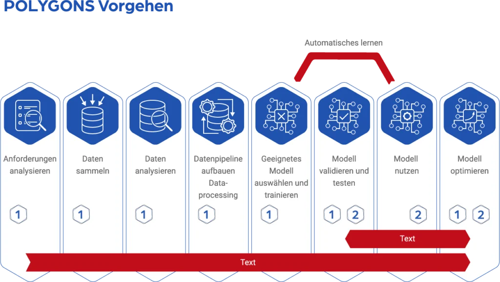 Zum anderen durch die Integration von KI-Funktionen direkt in Ihre Software. Steigern Sie die Effizienz und Funktionalität Ihrer Anwendungen durch intelligente Automatisierung von Geschäftsprozessen und datengetriebene Entscheidungsfindung. Nutzen Sie die Fähigkeiten von KI zur Erkennung von Trends zur Optimierung Ihrer Produkte. Profitieren Sie von vorausschauender Wartung und selbstlernenden Systemen, die sich kontinuierlich verbessern und an Ihre Bedürfnisse anpassen.